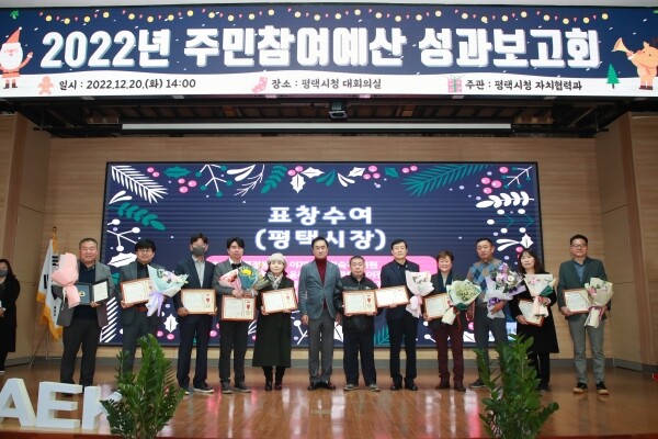 평택시장을 비롯해 주민참여예산위원회 위원 등 60여명이 참석한 가운데 올 한 해 주민참여예산제의 성과를 돌아보고 유공자 표창을 진행했다.