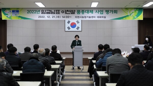 이번 평가회는 국립식량과학원, 지역농협, 농업인단체장, 농업인 등 70여명이 참석한 가운데 2018년부터 시작해 올해로 5년 차 사업인 ‘임금님표 이천쌀 품종대체 사업’의 사업 추진현황 및 성과, 품종 도입으로 인한 파급효과, 이천쌀 미질향상을 위한 대책 등의 내용으로 발표와 토의로 진행됐다.