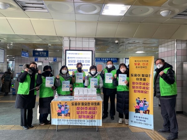 이번 캠페인은 복지 사각지대 발굴 노력에도 일가족 사망사건 등 위기가구가 계속 발생함에 따라 사각지대 발굴 및 신고의 중요성을 알리기 위해 실시했으며 망월사역을 이용하는 시민들을 대상으로 호원1동 지역사회보장협의체와 함께 전개했다.