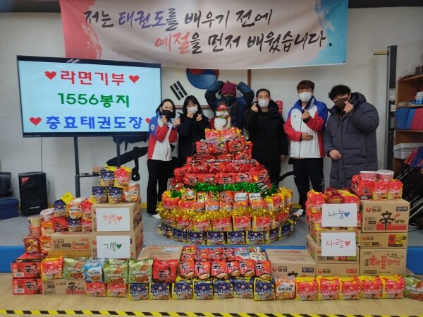 충효태권도는 매해 관원들이 모은 라면을 동두천 관내 사회복지기관에 후원해 오고 있으며 올해는 동두천시 장애인보호작업장을 선정해 해당 물품을 전달했다.