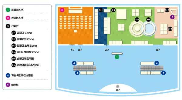 재제조, 재자원화, 친환경소재, 생태산업개발 등으로 구성된 전시관에는 순환경제를 선도하는 우수기술·제품을 소개했다.