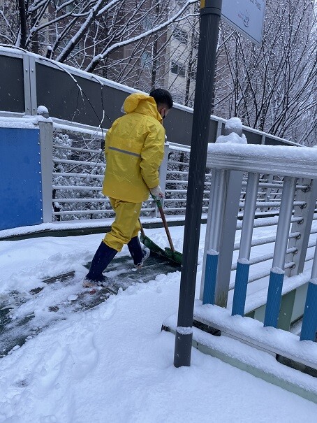 특히 등·하교하는 학생들의 미끄럼 방지 등 사고에 대비해 일산보도·육교 초등학교 주변 인도 횡단보도 버스 승강장 등을 중심으로 제설작업을 실시했다.