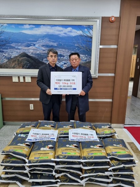 안문종 영중면장은 “연말을 맞아 나눔을 실천해주신 김상수 이사님께 깊은 감사의 말씀을 드린다 기탁하신 쌀은 겨울철 소외된 이웃들이 없도록 어려운 이웃에게 잘 전달하겠다”고 말했다.