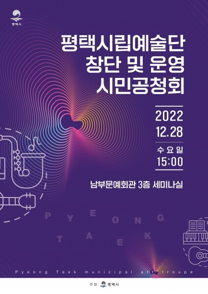시 관계자는 “이번 시민공청회는 지난 2021년~2022년 두 차례 진행되었던 평택시민 여론조사 결과 전체 응답자의 85.7%가 시립예술단 창단에 동의해 주신 바 있다”며 “시민들의 의견을 시립예술단 창단에 충실하게 반영할 수 있도록 시민들의 많은 참여를 부탁드린다”고 전했다.