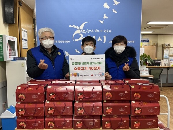 이날 전달식에는 김승안 바르게살기운동 교문1동 위원장, 이정미 총무와 교문1동장이 참석했으며 후원품은 크리스마스를 맞아 연말 한파로 인해 더욱 쓸쓸한 겨울을 보내고 계실 취약계층 40가구에 전달될 예정이다.