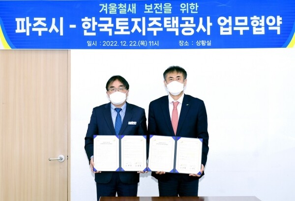이번 협약은 한강, 임진강 일대 서식하는 멸종위기종인 큰기러기, 재두루미 등 겨울철새 보전 및 서식지의 기능 향상을 위해 마련됐으며 파주시 탄현면 민통선 내 농경지를 대상으로 추진된다.