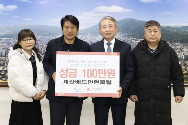 [뉴스써치] 인천광역시 계산배드민턴클럽은 23일 ‘희망2023 따뜻한사랑나누기 캠페인’에 동참해 성금 100만원을 계양구에 기탁했다.