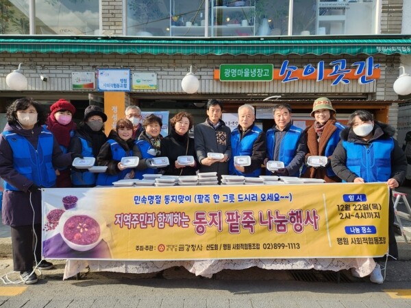 이번 행사는 금강정사와 행원사회협동조합에서 ‘작은 설’이라 불리는 동지를 맞이해 손수 팥죽을 정성스럽게 만들어 ‘소이곳간’을 채웠으며 소하2동지역사회보장협의체는 직접 팥죽을 전달하며 지역주민들과 온기를 나누었다.
