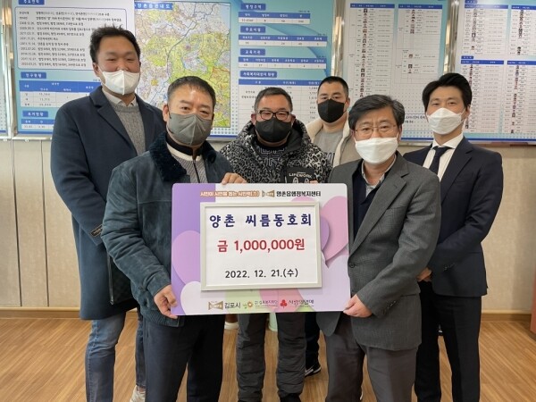 양촌씨름동호회 윤진근 회장은 “지역 내 어려운 분들에게 도움을 줄 수 있어 감사하게 생각한다”며 “앞으로도 이웃들과 함께 따뜻함을 나누기 위해 지역사회에 보탬이 되도록 지속해서 노력하겠다”고 말했다.