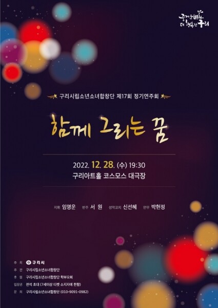 백경현 구리시장은 “이번 정기연주회의 주제가 ‘함께 그리는 꿈’인 만큼 공연장에 방문해주신 관객 모두가 2023년 계묘년에 대한 희망찬 꿈을 함께 그려가기를 바란다”고 전했다.