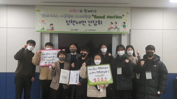 권리 주체인 아동이 일상 속 아동 권리 침해 상황을 스스로 탐색하고 개선 방안을 정책으로 제안하는 아동참여 조직인 ‘아동권리 모니터링단 굿모션’은 굿네이버스 경기의왕아동보호전문기관 이전 개관식을 진행한 지난 9월 28일 발대식을 가지며 활동을 시작했다.