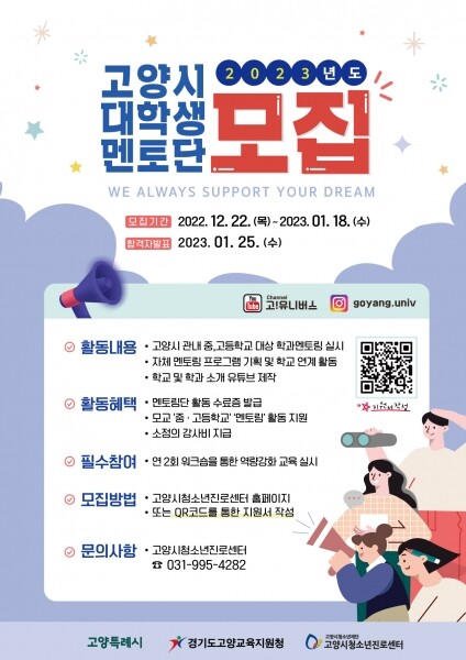 고양유니브는 고양시 중·고등학생들의 학과 선택 및 진로 설계를 돕는 대학생 멘토단이다.