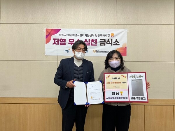 대상에는 시립파밀리에어린이집의 저염 닭고기 생크림 카레라이스가, 최우수상에는 시립휴아림어린이집의 단감 시금치 스크램블이, 우수상에는 운정롯데캐슬어린이집, 리틀어울림어린이집, 초코렛어린이집이 공동으로 선정됐다.