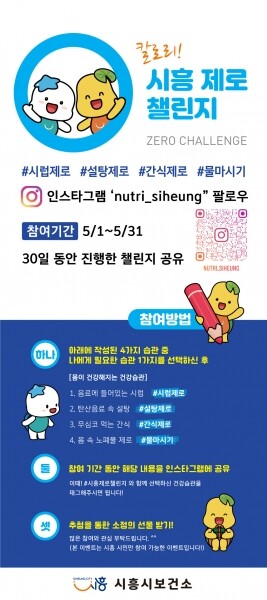 챌린지 참여 방법은 4가지 식습관 중 나에게 필요한 1가지 실천 주제를 선택한 후 한 달 동안 개인별 식생활 실천 후에 해당 내용을 시흥시 인스타그램 #시흥제로챌린지 태그와 함께 공유하면 된다.