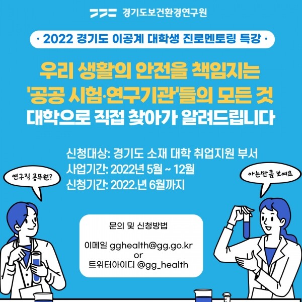 이번 특강은 진로를 고민 중인 이공계 학생을 위해 경기도보건환경연구원 소속 직원이 학교를 방문해 국내 시험·검사·연구 분야 전반에 걸친 정보를 유기적으로 연결해 설명하는 내용으로 구성됐다.