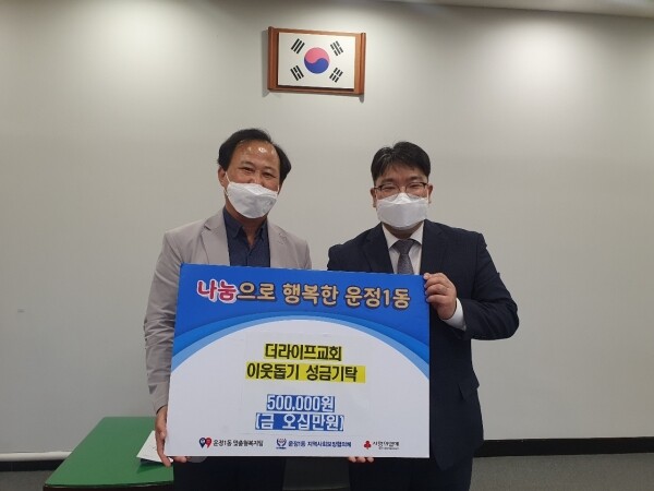 기탁한 성금은 기부자의 뜻에 따라 운정1동 지역 내 장애·질병·사고 등으로 어려움에 처한 위기가구 지원에 사회복지공동모금회를 통해 전달될 예정이다.
