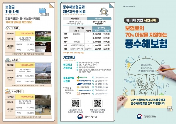 신청 기간 이후나 일반 주민은 풍수해보험을 운영하는 6개 민간보험사를 통해 연중 개별가입할 수 있다.