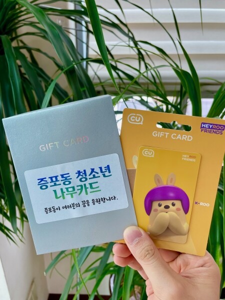 ‘나무카드’는 지역주민들의 후원금으로 진행되는 사업으로 청소년들이 튼튼한 나무처럼 무럭무럭 성장하길 바라는 어른들의 마음을 담아 이름 지은 카드이며 전국 CU편의점 어디서나 사용가능한 5만원이 충전된 선불카드로 복지대상 고등학생 청소년들에게 분기별로 1매씩 지급할 예정이다.