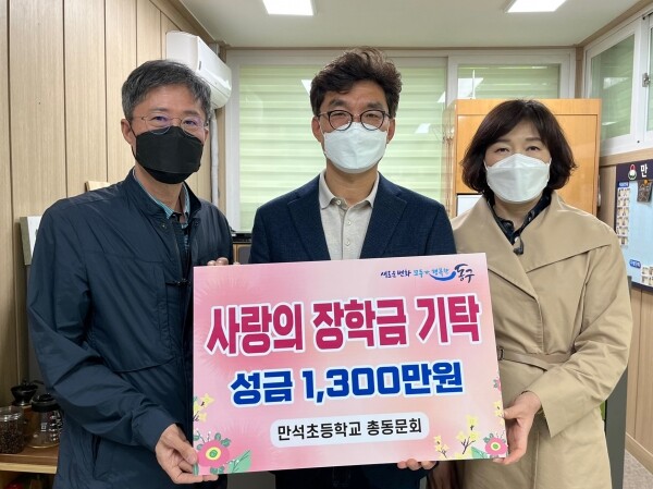만석초 총동문회 변종석 장학회장은 “전달하는 장학금이 아이들의 학업에 조금이나마 도움이 되었으면 좋겠다”며 “어려운 형편의 학생들이 학업에 전념해 사회에 기여하는 인재로 성장하길 바란다”고 말했다.