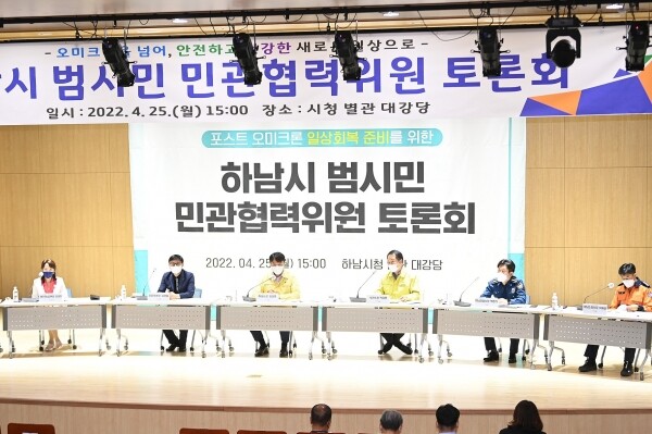 이날 토론회에는 김상호 시장, 김영철 공동위원장, 최종윤 국회의원, 김성미 광주하남교육지원청 교육장, 이제철 소방서장, 백현석 하남경찰서장을 비롯해 분야별 방역분과위원 등 150여명이 참석했다.