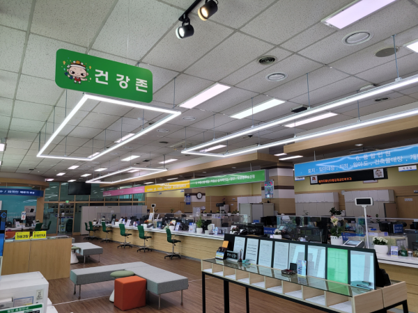민원실 방문객들이 편안함을 느낄 수 있도록 낡고 오래된 바닥과 조명을 전면 교체해 밝고 깨끗한 환경을 만들고 대기석 사이에 꽃화분을 추가 배치하는 등 기존 관공서 이미지를 탈피한 아늑한 분위기를 조성했다.