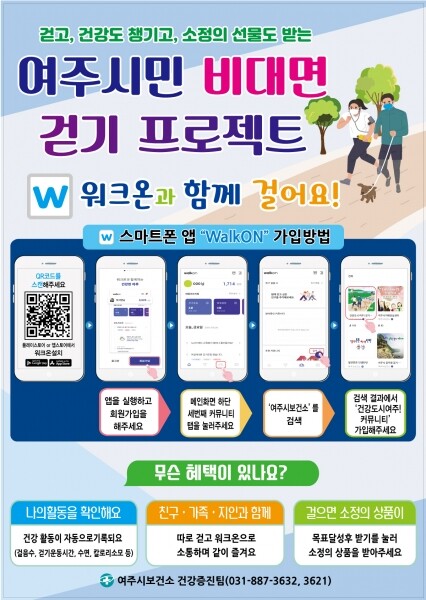 워크온은 여주시민 누구나 회원 가입 후 걷기만 하면 실시간 걸음 수와 활동량을 알려주고 목표 걸음 수 달성 시 인센티브를 제공하는 등 규칙적 걷기 및 신체활동을 장려해 건강한 생활 습관을 정착하는데 도움을 주는 모바일 플랫폼이다.