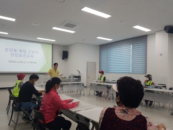 임영석 중앙동장은 “안전보건교육은 산업재해 예방을 위해 매달 진행하는 교육이다 실내든 야외든 현장에서 발생할 수 있는 안전사고를 미연에 방지하기 위해 작업 시 항상 안전에 유의해주길 바란다”고 말했다.